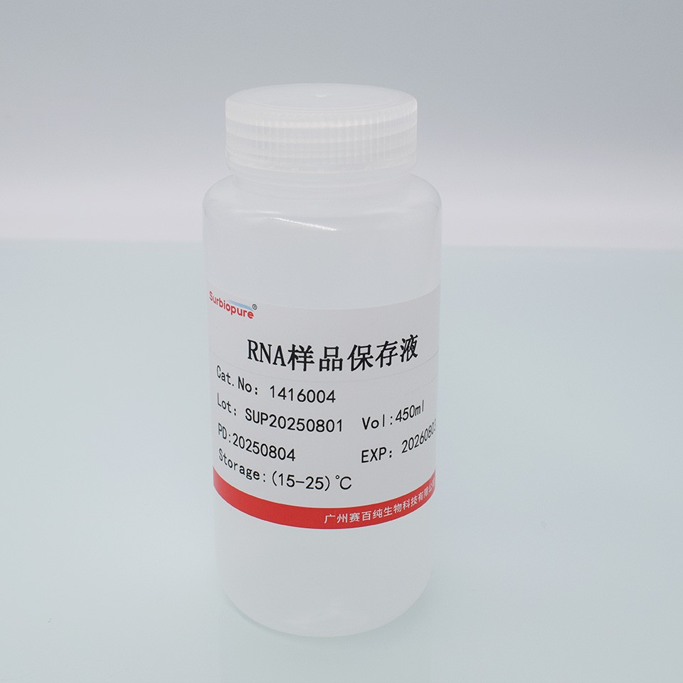 適用于動物組織(心,肝,腎,肌肉,睪丸,腦,脾等)、培養細胞、RNA 病毒、果蠅、細菌、白細胞、全血、一些植物組織等。RNAlater 是一種水相的,無毒的組織保存液體,可以迅速滲入新鮮組織細胞的胞漿中,在非凍狀態下原位穩定和保護細胞內的RNA。取下組織薄片后立刻浸入RNAlater保存并不影響將來提取RNA的質量和數量。RNAlater消除了RNA樣品需要立刻處理或者必須液氮保存的不方便。浸入RNAlater后,新鮮組織細胞中RNA可以完好的在37?C下保存一天, 在25?C下保存一周, 4?C下保存一個月, 在-20?C或-80?C下長期保存。RNA 病毒樣品(如HCV 和HIV)可在37?C保存一個月。